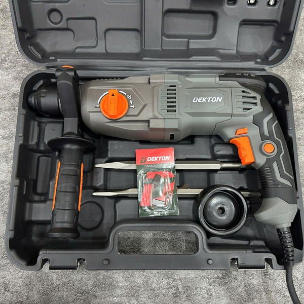 Máy khoan bê tông 3 chức năng Dekton DK-RH2603PRO là thiết bị công cụ cầm tay chính hãng đến từ thương hiệu uy tín DEKTON. Được thiết kế chuyên dụng cho các công việc khoan và đục bê tông, máy sở hữu công suất mạnh mẽ lên đến 1050W kết hợp lực đập 3.2J, giúp thực hiện các tác vụ khoan búa và đục bê tông hiệu quả, nhanh chóng. Với cơ chế khoan 3 chức năng tiện lợi, DK-RH2603PRO là lựa chọn hoàn hảo cho các thợ xây dựng, thợ điện, thợ sửa chữa và những người làm việc trong lĩnh vực xây dựng cần một công cụ bền bỉ, mạnh mẽ và đa năng.