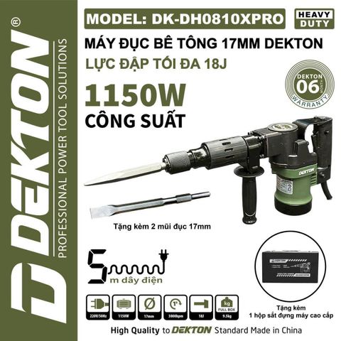 17MM Khoan Đục Bê Tông DEKTON DK-DH0810XPRO là công cụ khoan đục bê tông chuyên nghiệp được thiết kế dành riêng cho các công trình xây dựng và sửa chữa đòi hỏi hiệu suất cao cùng độ bền vượt trội. Sản phẩm thuộc thương hiệu DEKTON - một trong những hãng sản xuất dụng cụ cầm tay uy tín, nổi bật với chất lượng và khả năng hoạt động bền bỉ trong môi trường khắc nghiệt.