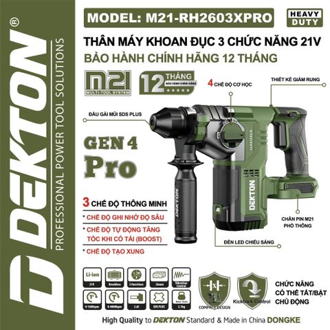 Giới thiệu Máy khoan đục 3 chức năng DEKTON M21-RH2603XPRO