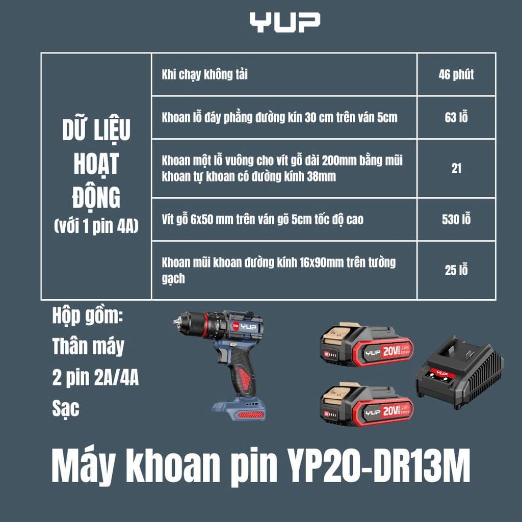 - Tên sản phẩm: 20V KHOAN VÍT BÚA 13mm Jiangsu YUP YP20 DR13M