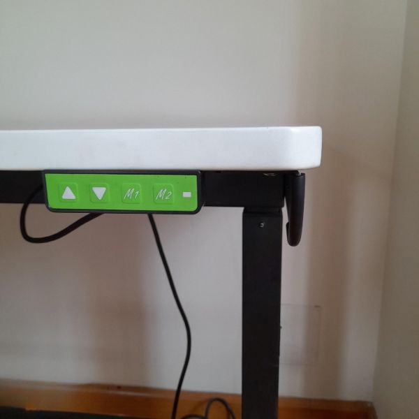 - Điều chỉnh chiều cao điện tử linh hoạt: Hệ thống động cơ điện mạnh mẽ giúp nâng hạ mặt bàn từ 80 cm lên đến 124 cm chỉ với thao tác nút bấm đơn giản, phù hợp với đa dạng tư thế làm việc.
