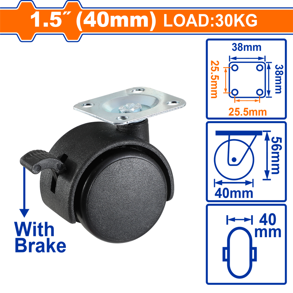 - Đường kính bánh: 1.5 inch (38 mm)