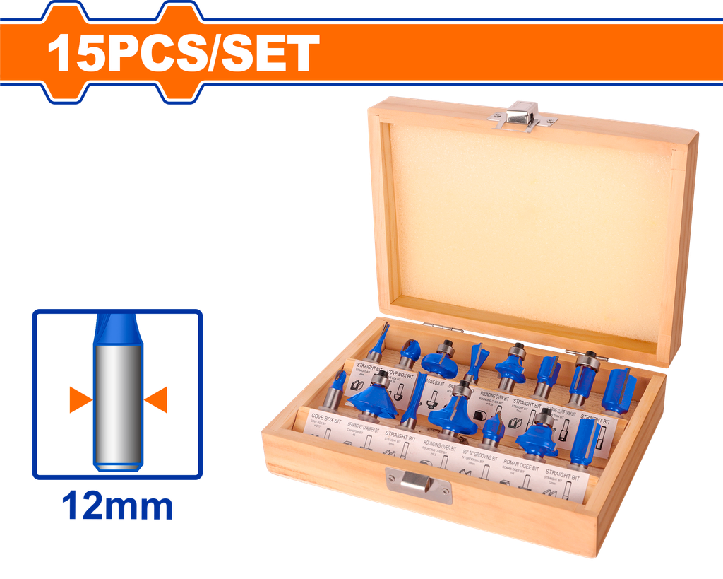Giới thiệu sản phẩm: Bộ 15 Mũi Phay Gỗ 12mm WADFOW WRG5P12
