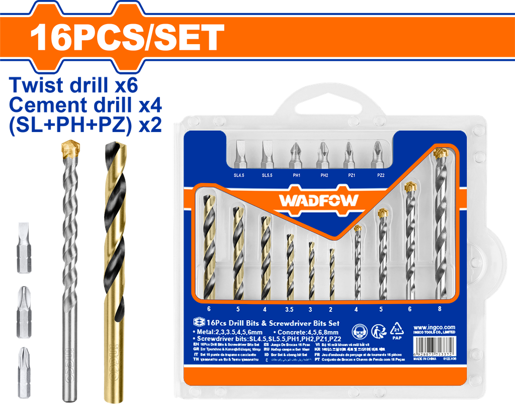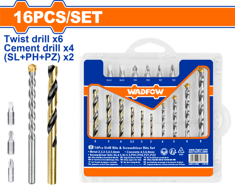 Sản phẩm Bộ 16 Mũi Khoan Và Mũi Vít WADFOW WKS4165 thích hợp cho: