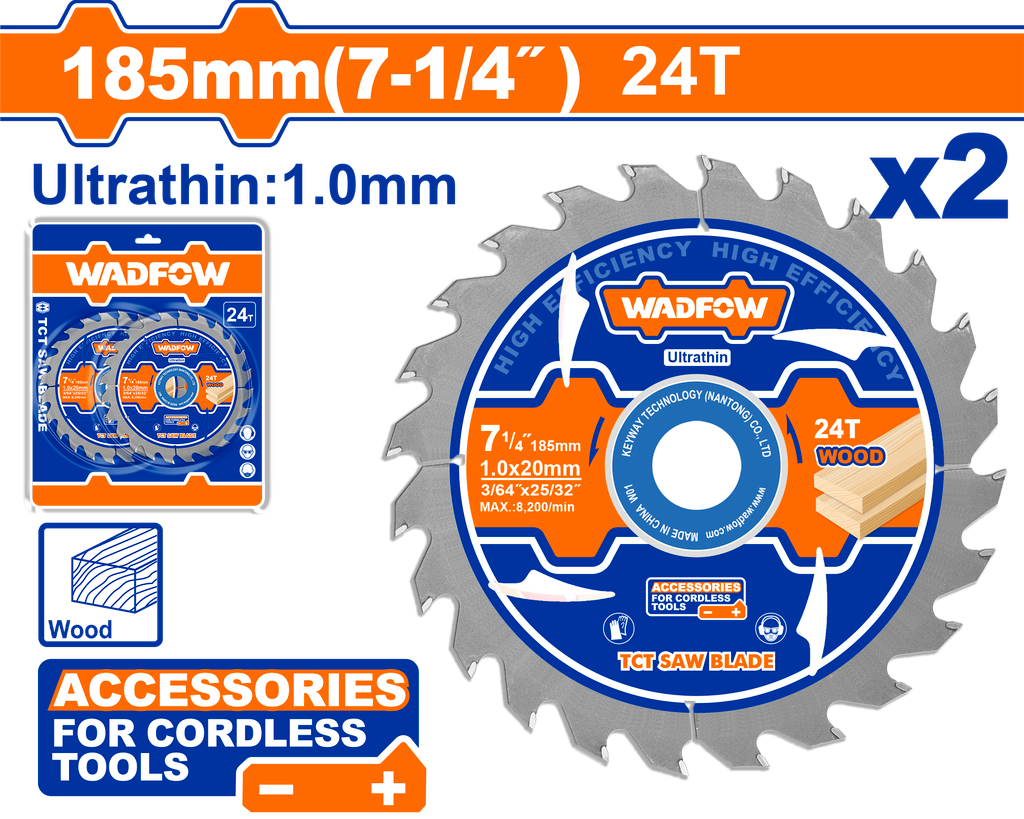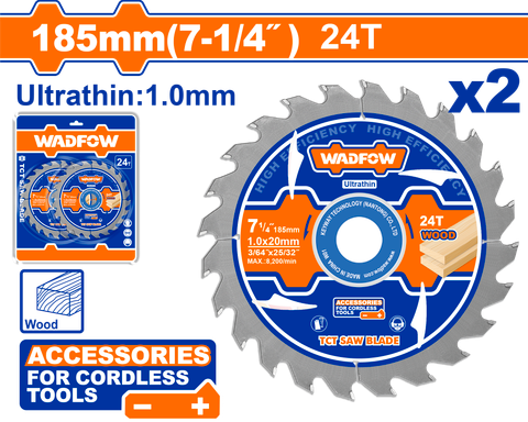 Bộ 2 Lưỡi Cưa Gỗ TCT Siêu Mỏng 185mm-24T WADFOW WTC3K18 – Giải Pháp Cưa Gỗ Hiệu Quả và Tiết Kiệm