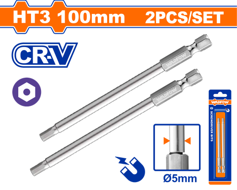 Bộ 2 Mũi vặn vít 1/4"-HT3 Wadfow WSV9KHT3 là sự lựa chọn tuyệt vời cho những ai cần sản phẩm công cụ chất lượng, độ bền cao và giá cả hợp lý. Với thiết kế chuẩn Torx và kích thước thích hợp, sản phẩm giúp tối ưu hóa các thao tác vặn vít, phù hợp với nhiều ngành nghề và mục đích sử dụng khác nhau.
