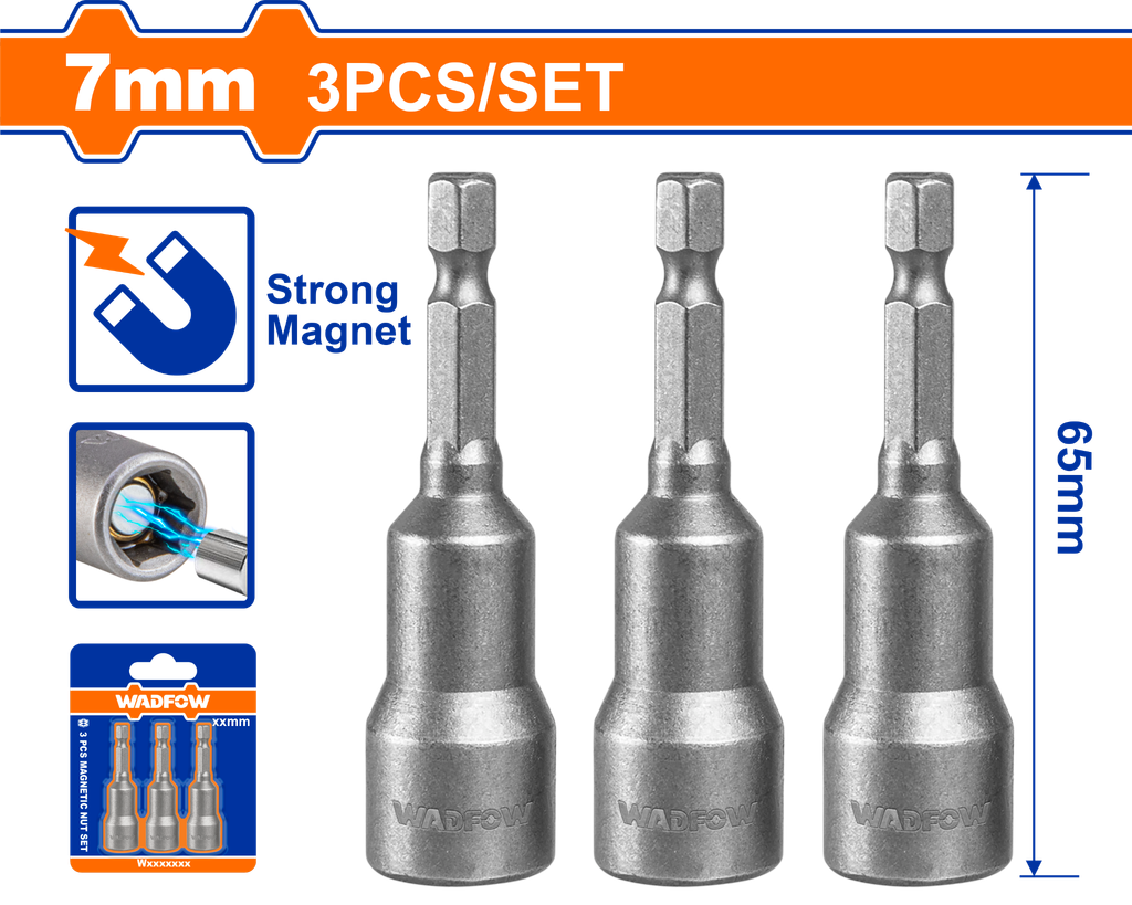 Bộ 3 Mũi Bắn Tole 7mm WADFOW WWR2K07 là sản phẩm công cụ cầm tay chất lượng cao, được thiết kế dành riêng cho công việc bắn vít trên các vật liệu mỏng như tole, tôn, giúp tăng hiệu quả làm việc và độ chính xác cho thợ sửa chữa và kỹ thuật viên.