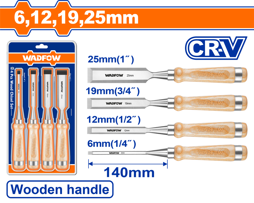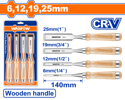 Bộ 4 Đục Gỗ 6 12 19 25mm WADFOW WWC3214 - Công Cụ Đục Gỗ Chuyên Nghiệp Giá Rẻ