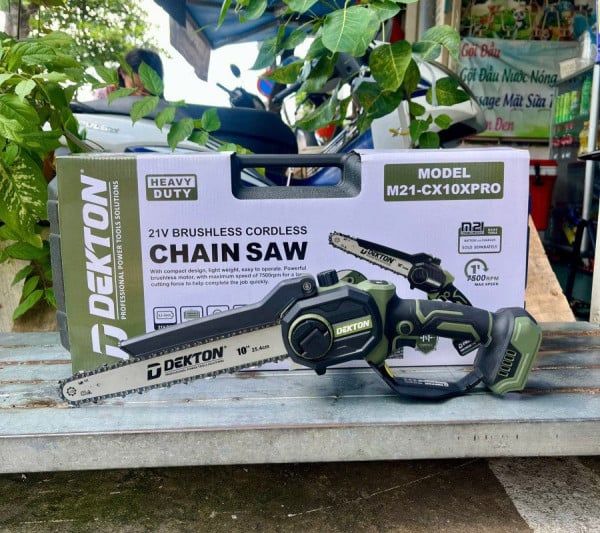 Cưa Xích Pin 10 Inch Dekton M21-CX10XPRO là sản phẩm máy cưa xích hiện đại đến từ thương hiệu uy tín DEKTON. Thiết kế nhỏ gọn, trọng lượng nhẹ chỉ 1.6kg cùng công nghệ motor brushless tiên tiến giúp thao tác nhanh chóng, hiệu quả và bền bỉ. Đây là lựa chọn tối ưu dành cho cả thợ chuyên nghiệp và người dùng yêu thích sự tiện lợi, an toàn trong các công việc cưa cắt gỗ, cành cây hay các vật liệu mềm khác.