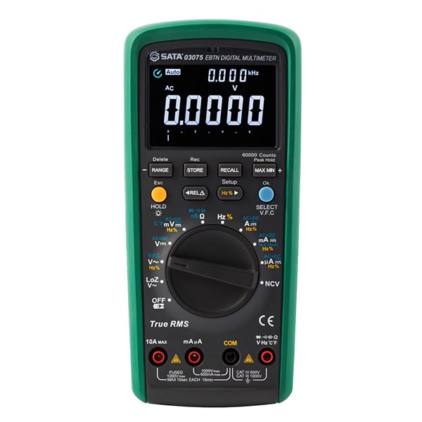 Đồng hồ vạn năng True RMS thông minh 10A SATA 03075 là thiết bị đo lường điện tử đa năng đến từ thương hiệu uy tín SATA. Sản phẩm được thiết kế dành riêng cho các kỹ thuật viên, kỹ sư điện và các chuyên gia trong lĩnh vực điện tử, mang lại khả năng đo chính xác, nhanh chóng và dễ dàng với nhiều tính năng thông minh. Với thiết kế hiện đại, kích thước nhỏ gọn cùng nhiều chế độ đo đa dạng, SATA 03075 đáp ứng mọi yêu cầu công việc từ đo điện áp, dòng điện cho đến đo nhiệt độ và tần số trong môi trường công nghiệp hoặc bảo trì kỹ thuật.