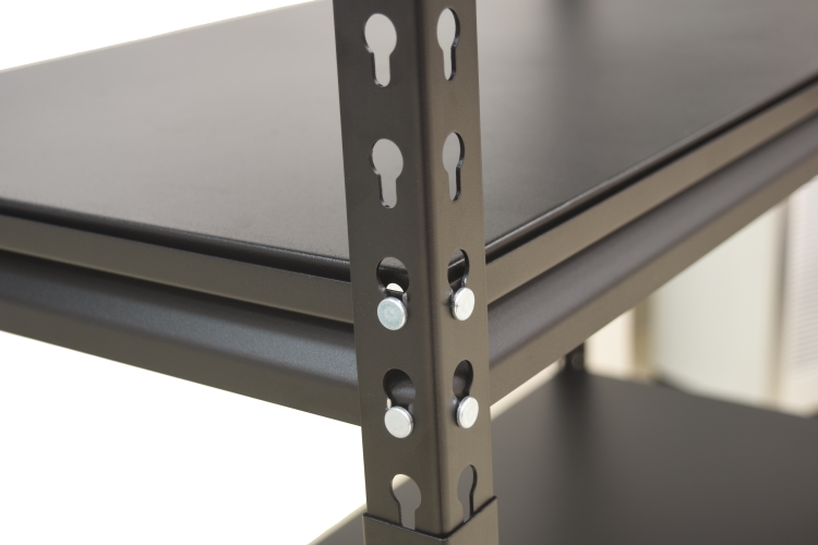 - Thiết kế linh hoạt, dễ dàng điều chỉnh: Các thanh đứng có lỗ đục sẵn dạng khóa chìa, cho phép điều chỉnh độ cao các tầng kệ một cách nhanh chóng, phù hợp với nhiều kích thước vật dụng.