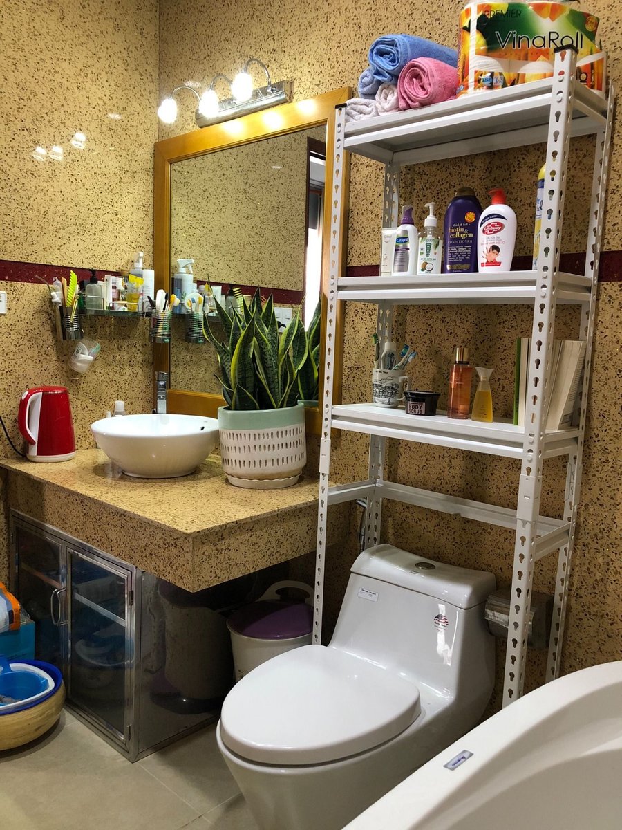 Kệ có thể đặt sát tường, góc nhà vệ sinh hoặc ngay trên bồn cầu, giúp tận dụng không gian một cách tối ưu mà không gây cản trở sinh hoạt.