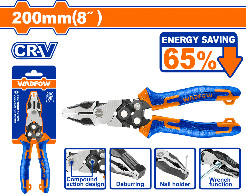 Giới thiệu sản phẩm Kìm Răng Trợ Lực 8"/200mm WADFOW WPL1768
