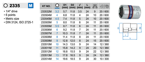 Đầu tuýp ngắn 1/4 inch lục giác 7mm Kingtony 233507M