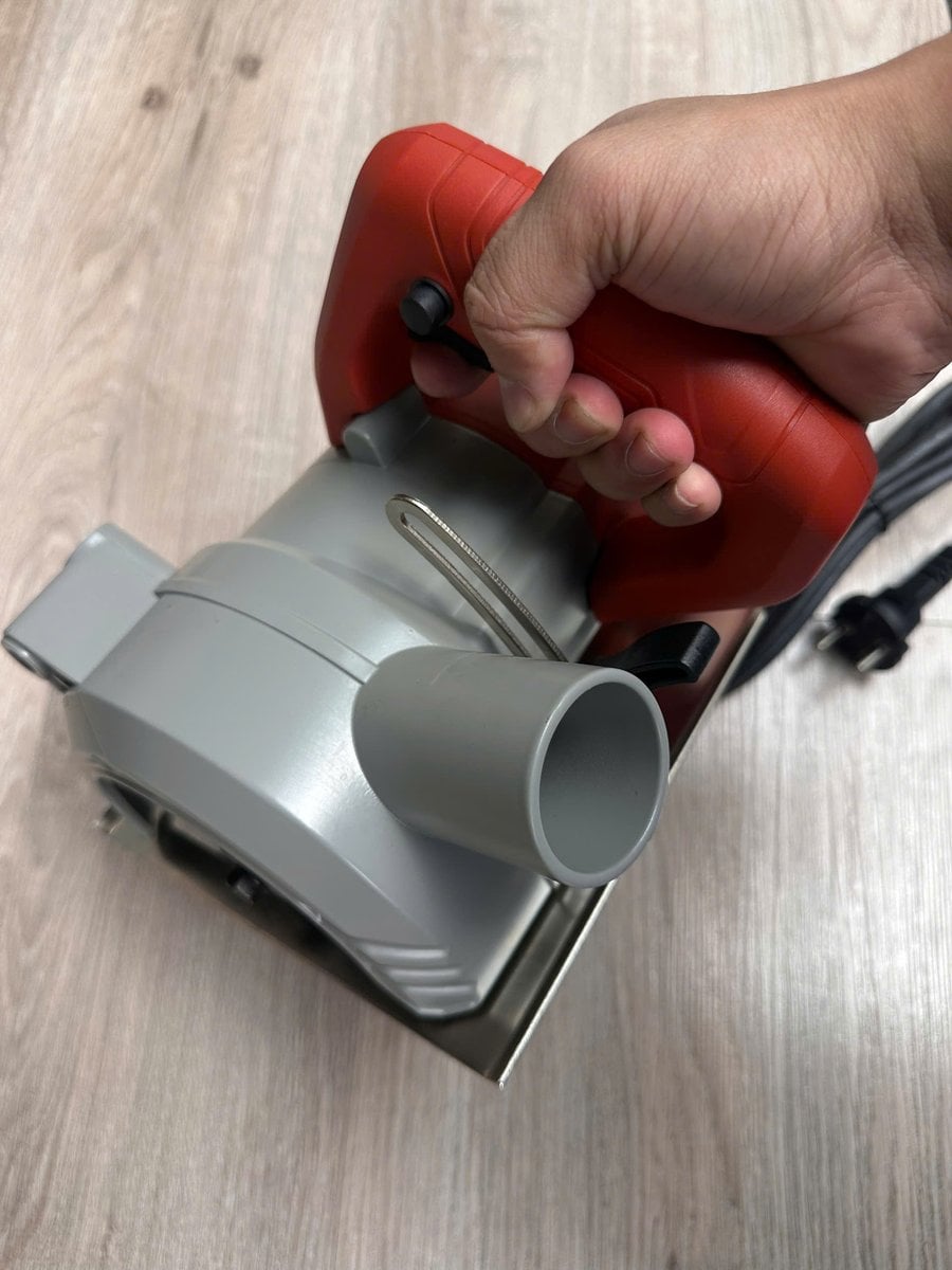 Thiết kế công thái học với tay cầm chống trượt màu đỏ nổi bật, kết hợp với thân máy chắc chắn bằng hợp kim kim loại và nhựa cao cấp, giúp tăng độ bền và sự an toàn khi vận hành. Máy còn được trang bị tay cầm phụ giúp kiểm soát tốt hơn khi thực hiện các thao tác cắt rãnh sâu hoặc rộng.
