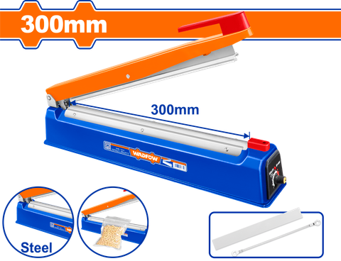 Máy hàn miệng túi WADFOW WXY1003 là thiết bị dụng cụ cầm tay được thiết kế chuyên dụng cho việc niêm phong, bảo quản sản phẩm trong các dòng túi nhựa hoặc nilon có chiều dài miệng hàn đến 300mm. Với vỏ máy làm từ thép sơn tĩnh điện chắc chắn, máy không chỉ bền bỉ mà còn đem lại sự an toàn tối đa khi sử dụng.