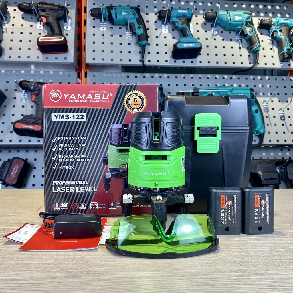 MÁY LASER CÂN BẰNG 5 TIA XANH YAMASU YMS-122 là thiết bị đo đạc hiện đại, chuyên nghiệp dành cho các kỹ sư, thợ xây dựng và thợ lắp đặt yêu cầu độ chính xác cao trong công tác cân bằng, đo đạc và định vị. Với công nghệ tia laser xanh tiên tiến, YMS-122 mang đến sự rõ nét vượt trội so với tia đỏ truyền thống, giúp người dùng dễ dàng quan sát trong mọi điều kiện ánh sáng, kể cả ngoài trời.