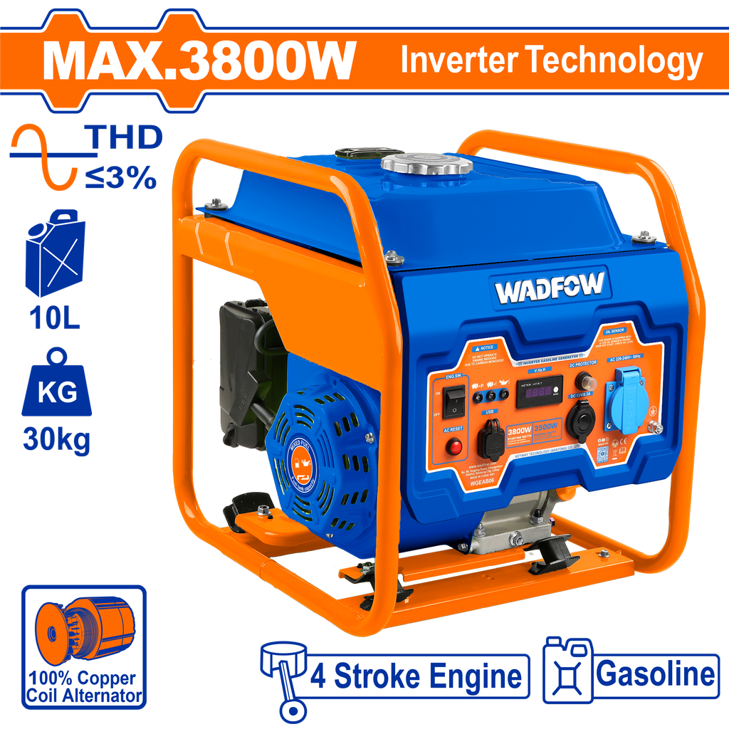 Giới thiệu sản phẩm Máy phát điện chạy xăng biến tần 3.8KW Wadfow WGEAB06