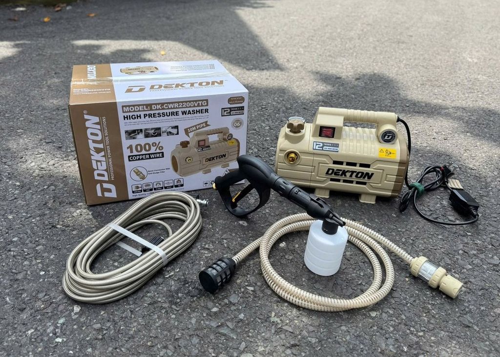 Máy xịt rửa xe DEKTON DK-CWR2200VTG là sự lựa chọn hoàn hảo cho những ai cần một thiết bị rửa xe áp lực cao, bền bỉ, an toàn và dễ sử dụng. Với các tính năng ưu việt như điều chỉnh áp lực, dây xịt dài 10m, công tắc chống giật, cùng thiết kế súng kim loại chắc chắn, máy giúp công việc vệ sinh xe và các bề mặt khác trở nên nhanh chóng và hiệu quả hơn bao giờ hết. Mua ngay tại Trung Tâm Dụng Cụ để được hưởng dịch vụ uy tín, đảm bảo chất lượng và giá trị lâu dài.