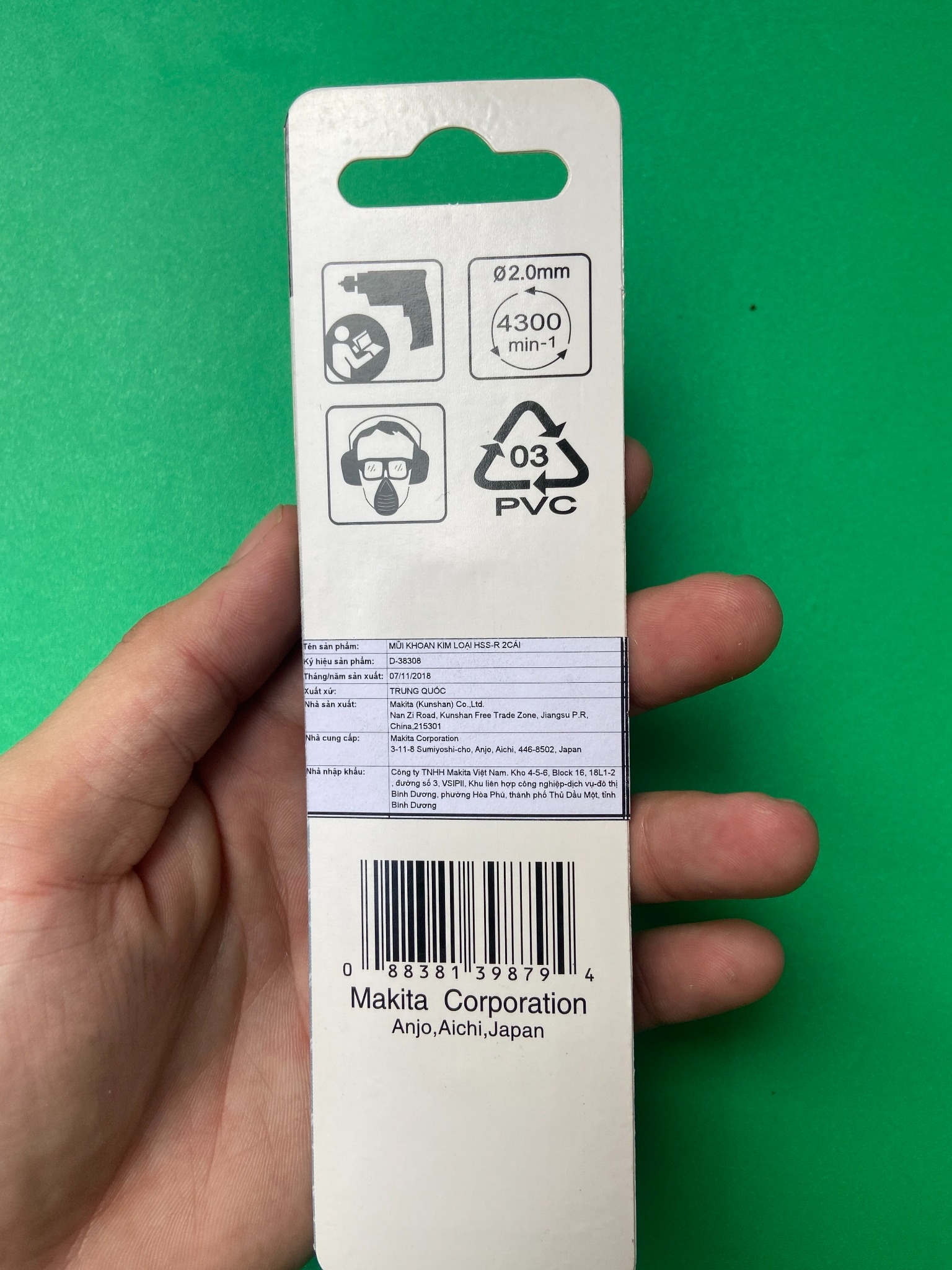 Mũi khoan kim loại HSS-R 2 cái/bộ 2mm Makita D-38308 là một sản phẩm không thể thiếu cho các công việc khoan kim loại đòi hỏi độ chính xác và độ bền cao. Với chất liệu thép gió HSS-R cùng lớp phủ Oxide đen, sản phẩm đảm bảo mang đến hiệu suất khoan tối ưu, đồng thời tiết kiệm chi phí nhờ độ bền vượt trội. Đặc biệt, giá rẻ và giá tốt khi mua tại Trung Tâm Dụng Cụ giúp bạn luôn yên tâm về chất lượng và dịch vụ.