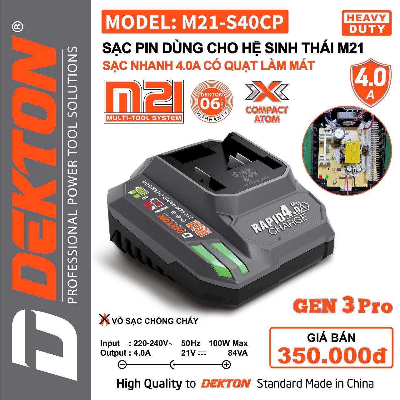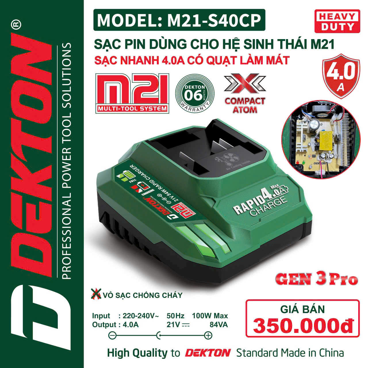 Sạc 21V 4A Dekton M21-S40XCP có tương thích với pin hãng nào?