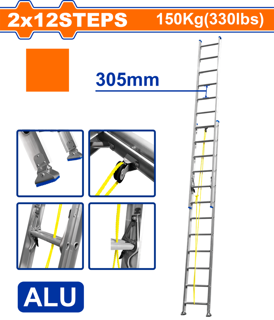 Thang nhôm trượt kéo dài WADFOW WLD8H24 là sản phẩm sản xuất từ nhôm cao cấp, được thiết kế đặc biệt với 2 đoạn và 12 bậc tương ứng mỗi đoạn, tổng cộng 24 bậc giúp người dùng dễ dàng thao tác ở nhiều độ cao khác nhau. Với chiều cao kéo dài tối đa lên đến 6.400mm, thang nhôm này là lựa chọn tối ưu cho các công việc sửa chữa, xây dựng, lắp đặt ở các vị trí cao một cách an toàn và tiện lợi.