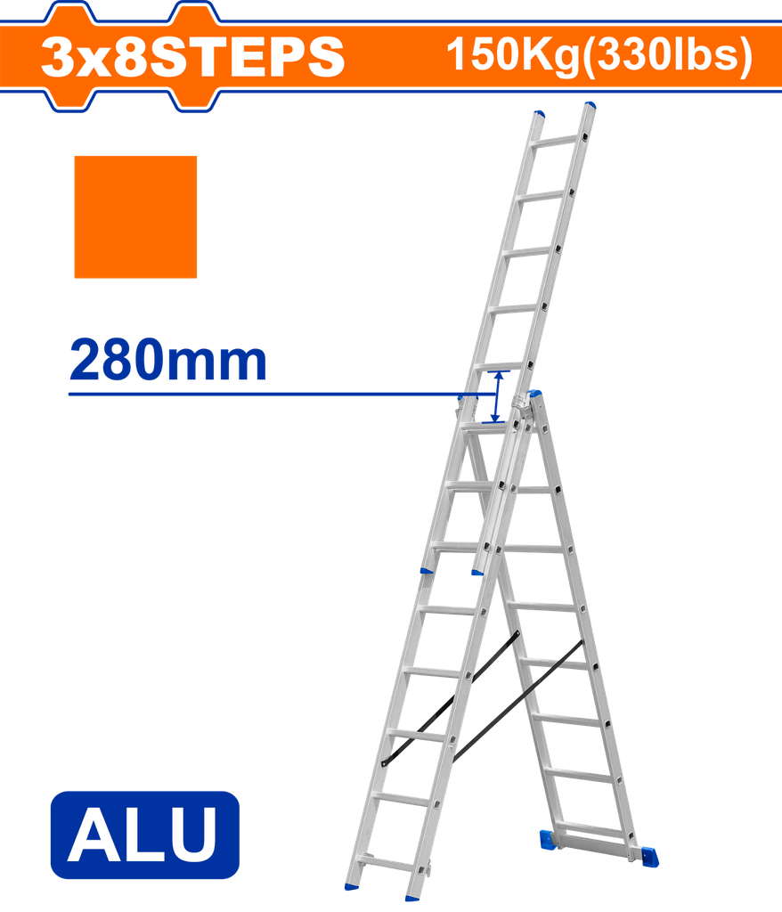 Giới thiệu sản phẩm Thang Xếp Nhôm Kéo Dài 3 Đoạn 3x8 WADFOW WLD6H38
