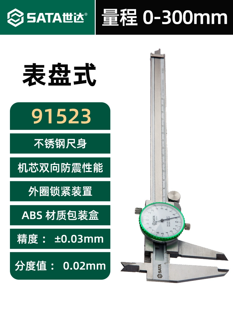 Thước cặp đồng hồ cơ 0-300mm, 0.02mm SATA 91523 – Dụng cụ đo lường chính xác và bền bỉ