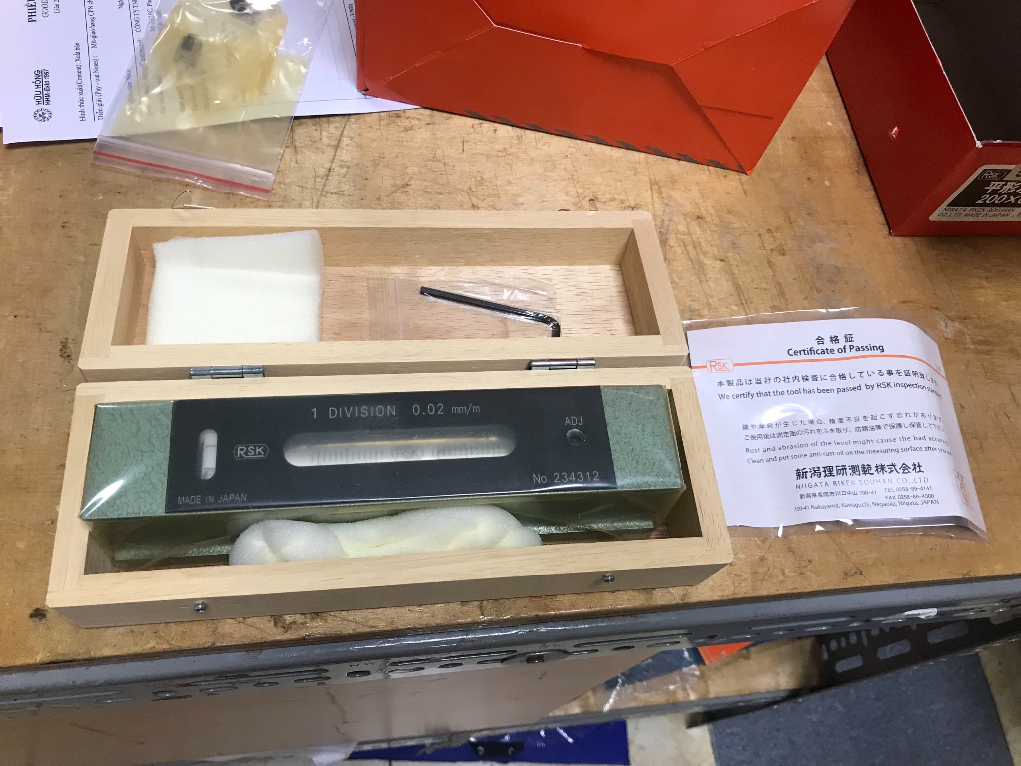 Thước thủy dạng thanh kích thước : chiều dài 200mm, chiều cao 48mm, chiều ngang 47mm, độ nhạy 0.02mm/m 542-2002