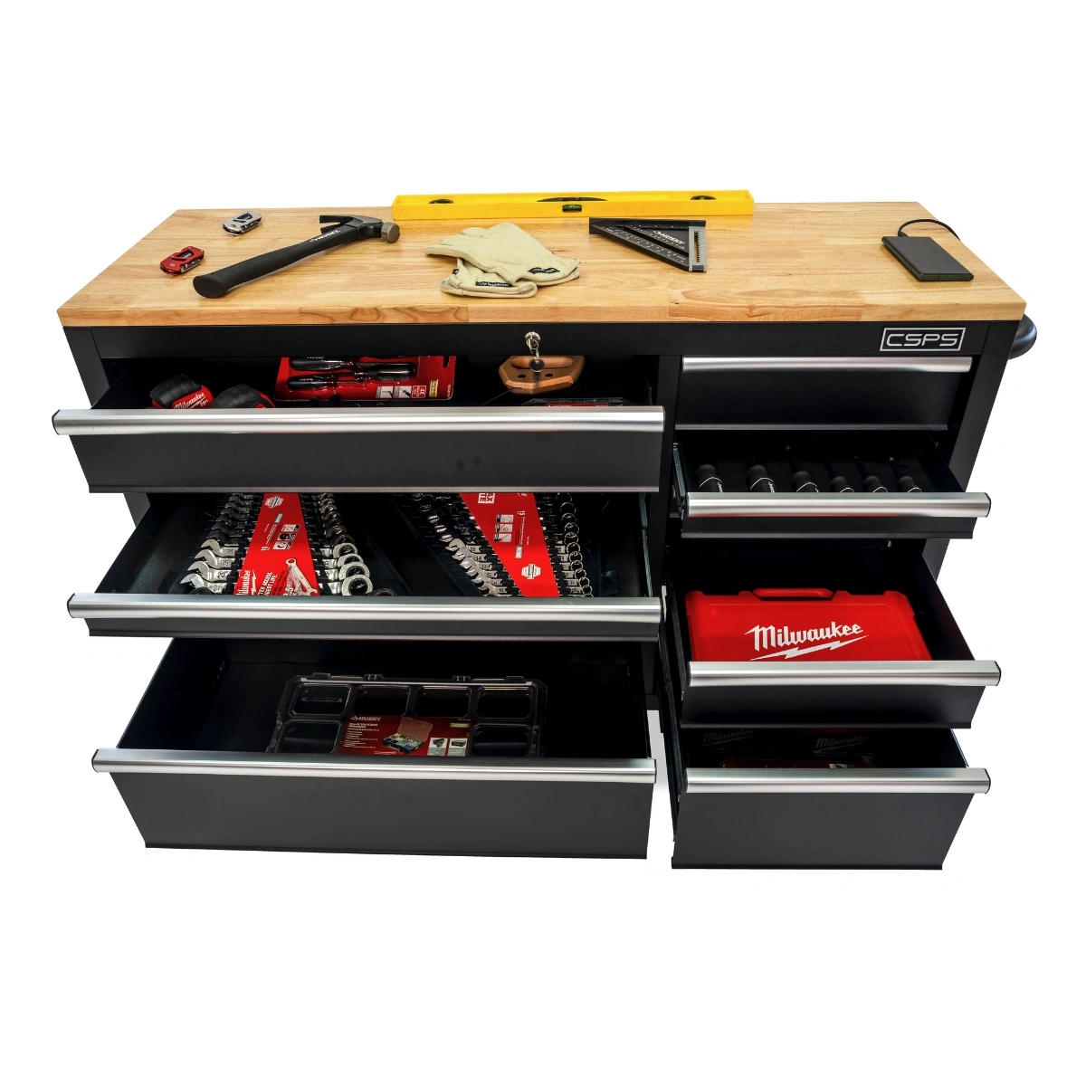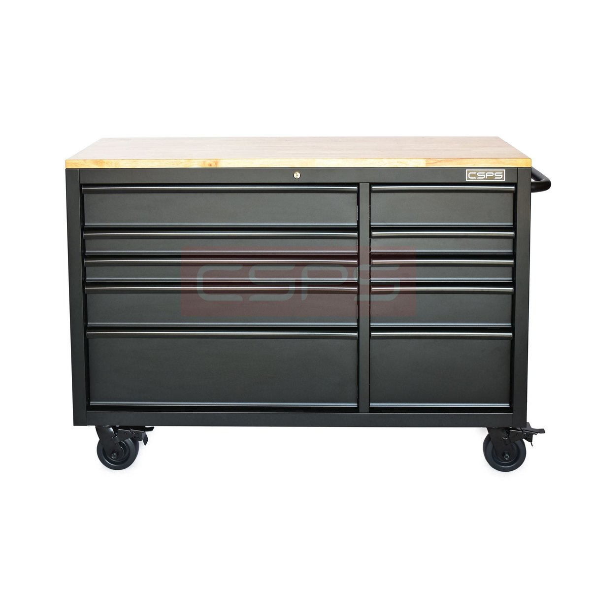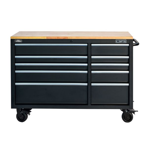 Được sản xuất bởi thương hiệu CSPS uy tín, tủ dụng cụ này không chỉ đáp ứng tiêu chuẩn về độ bền, khả năng chịu lực mà còn có tính thẩm mỹ cao với lớp sơn tĩnh điện màu đen mờ kết hợp mặt bàn gỗ sáng màu, tạo nên sự hài hòa và chuyên nghiệp cho không gian làm việc.