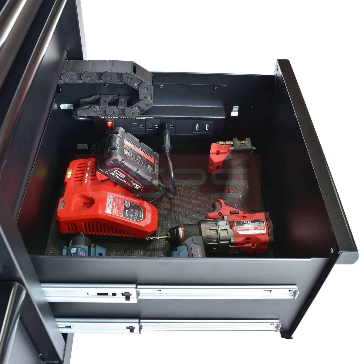 Có, mỗi ngăn kéo của sản phẩm chịu tải lên tới 45 kg, tổng tải trọng toàn bộ tủ lên tới 680 kg, đảm bảo lưu trữ được các loại dụng cụ nặng và nhiều thiết bị cùng lúc.