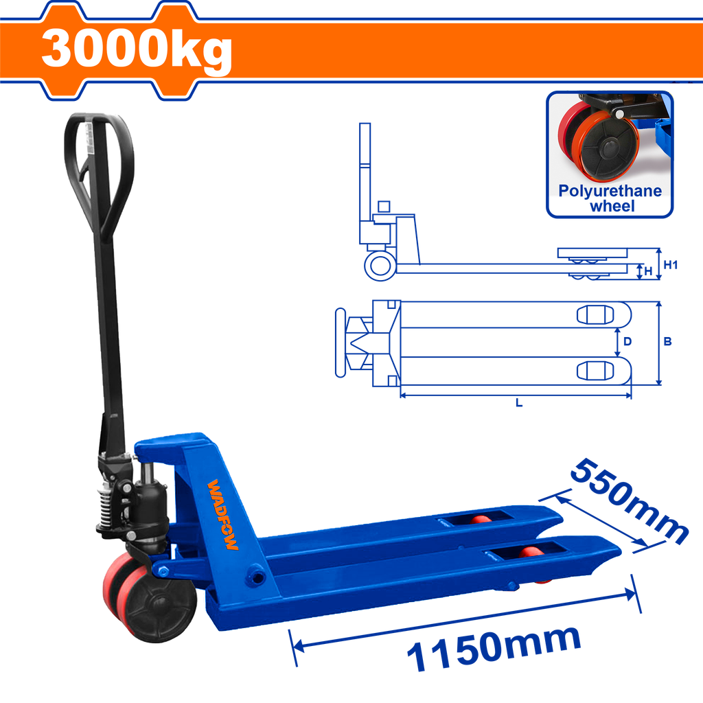 Xe nâng tay 3 tấn Wadfow WNH1R30 là một sản phẩm không thể thiếu trong các kho bãi, nhà máy và cửa hàng với yêu cầu nâng hạ hàng hóa nặng. Với thiết kế chắc chắn và khả năng chịu tải lên đến 3.000 kg, sản phẩm này sẽ giúp tối ưu hóa quy trình vận chuyển hàng hóa của bạn.