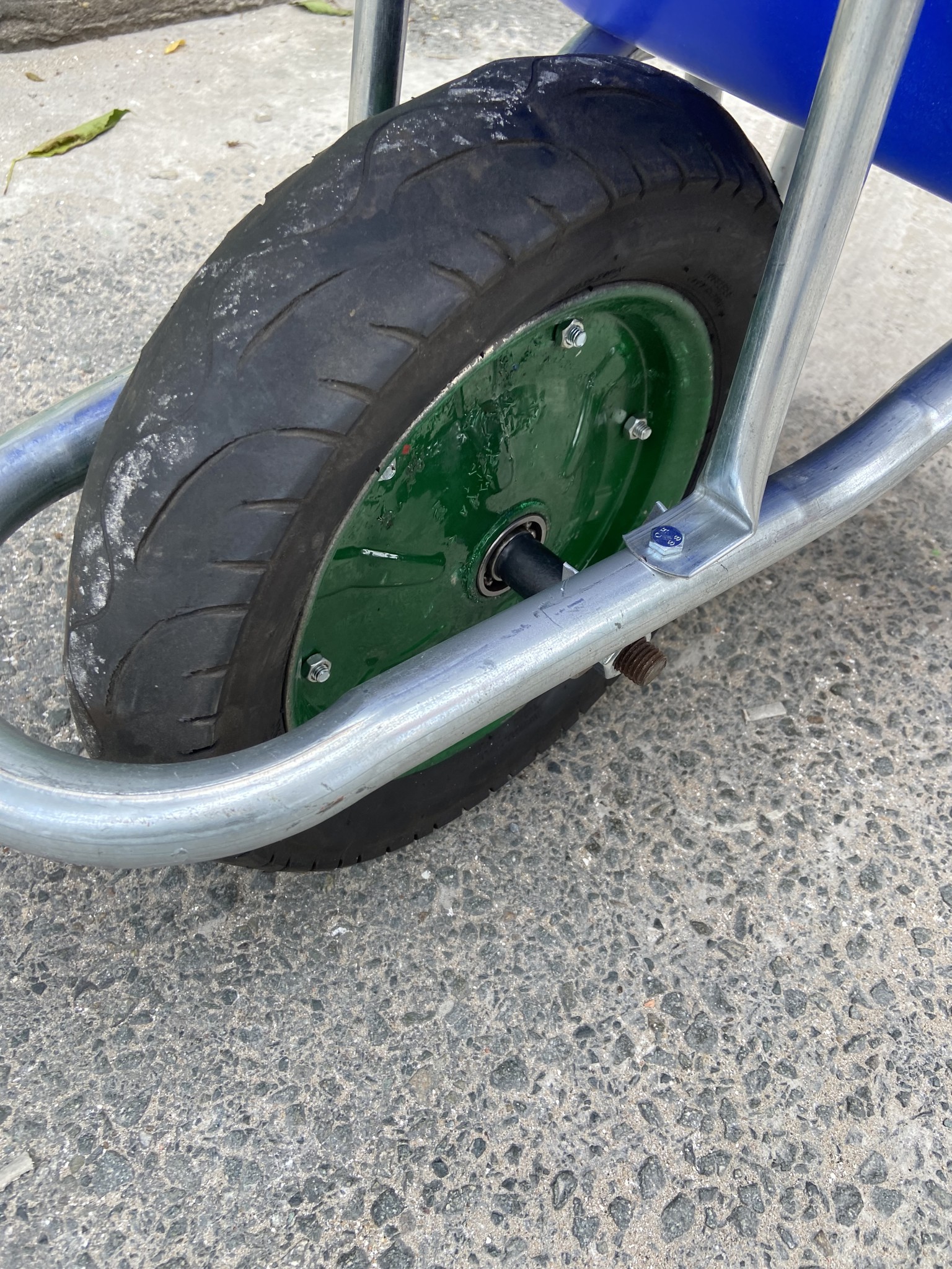 - Bánh xe: Lốp hơi, trục thép